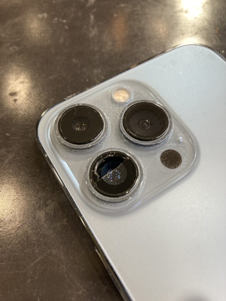 iPhone 13 Proのカメラレンズが割れて、半分どこかに行ってしまいました。