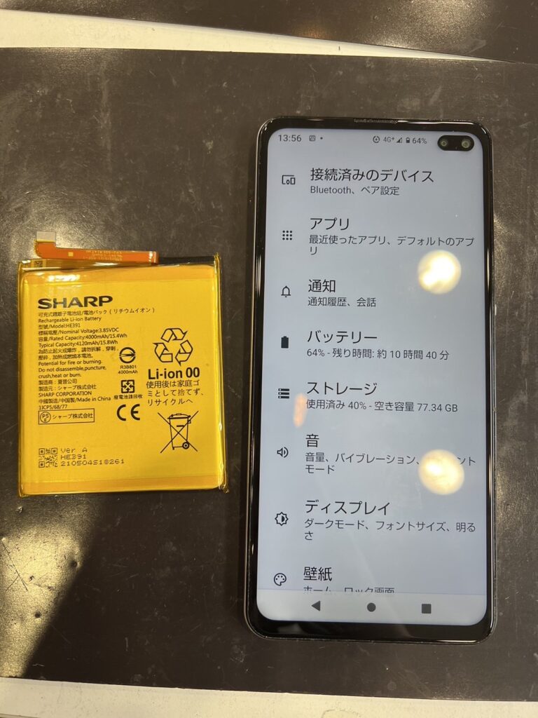 Androidなどのスマホもバッテリー交換しています。AQUOS sense 4 Plus バッテリー交換