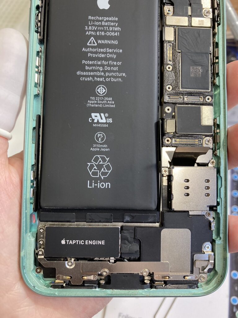 お客様「接着剤を使ったけどダメでした」充電口の異物は専門店にお任せください!|iPhone 11 充電口修理