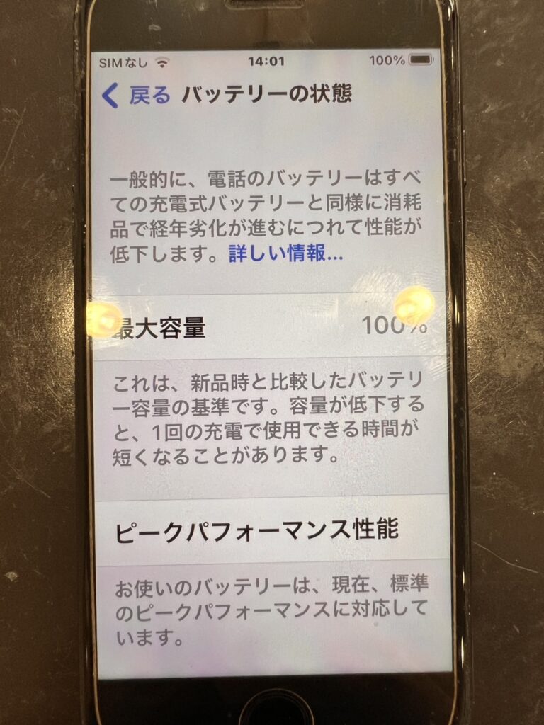 バッテリー最大容量80%を下回ると交換目安なのですが、このようにずっと表示が固定されることもあります。バッテリーの減りが早いと感じる、新品時から2~3年といった目安もありますので、最大容量だけで交換するのではなく、そういった部分でも交換をご検討ください。