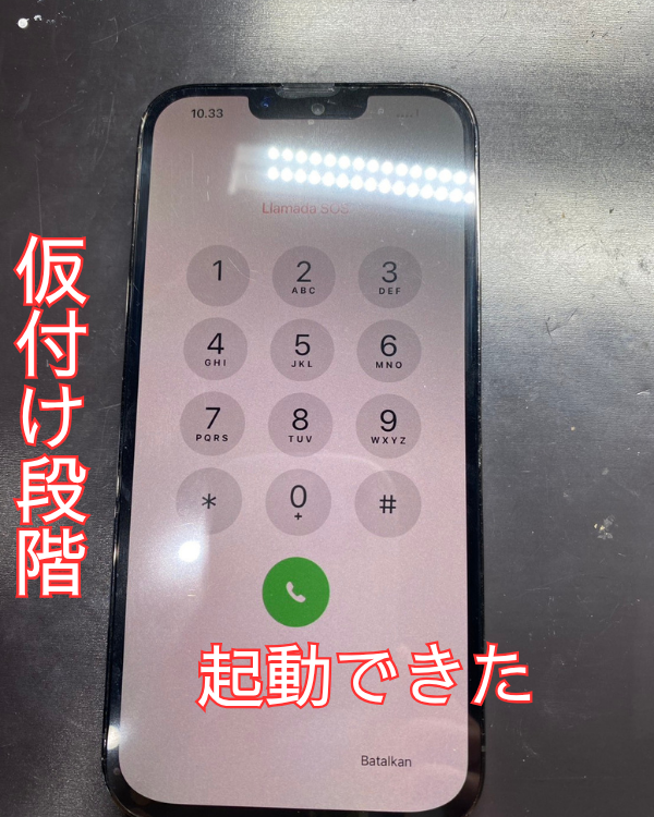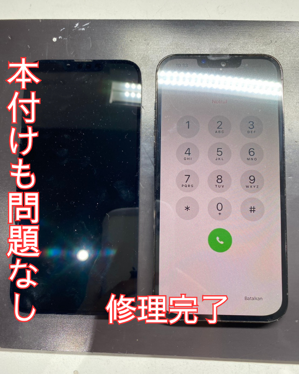 修理時間30分程。本付けしても問題なく起動しました。有機ELパネル(純正に近い画質で消費電力が少なく、滑らかな操作性)を使用し、タッチも表示も問題無し!データもそのまま!緑の画面から復活(*^▽^*)お客様もホッとした様子で良かったです!