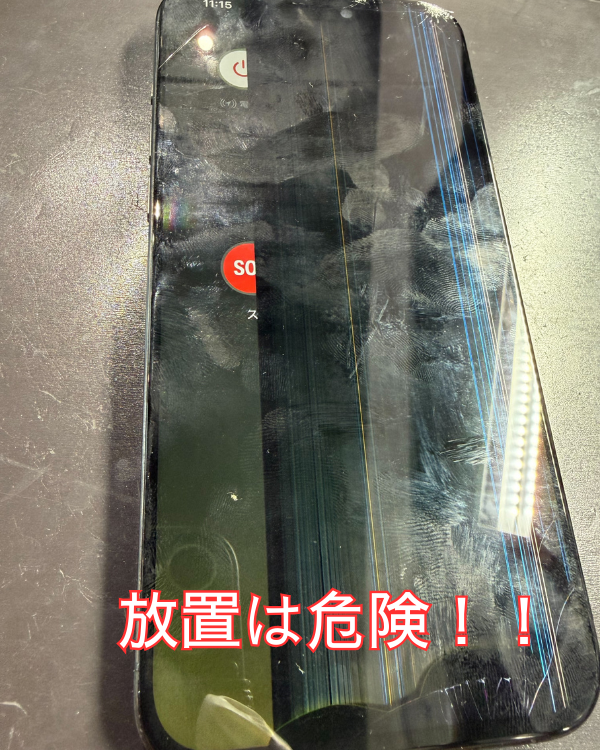 本日はiPhone15ProMaxの修理です。iPhone15ProMaxは大画面が魅力の機種ですが、落下の衝撃などが加わると外側が少しの割れでも内部の液晶だけが徐々に壊れてしまう場合があります。今回の端末は画面中央の液 …投稿日:2025-12-07