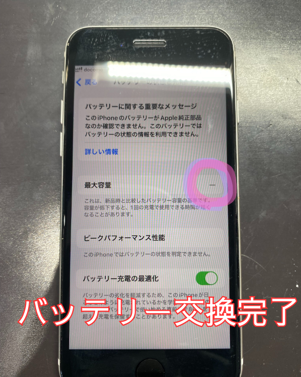 iPhoneSE3、バッテリー交換。交換後に最大容量がハイフン表示に⁉