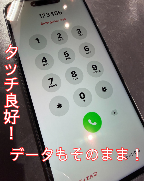 今回お預かりした iPhone14ProMaxは電源は入っているのに画面全体に細かい縦線がびっしり表示されて何も見えない状態でした。タッチ反応も不安定で「電源も切れず、もう助けて~」とお客様がお困りでした。お任せください!そんな症状でも即日解決いたします!
