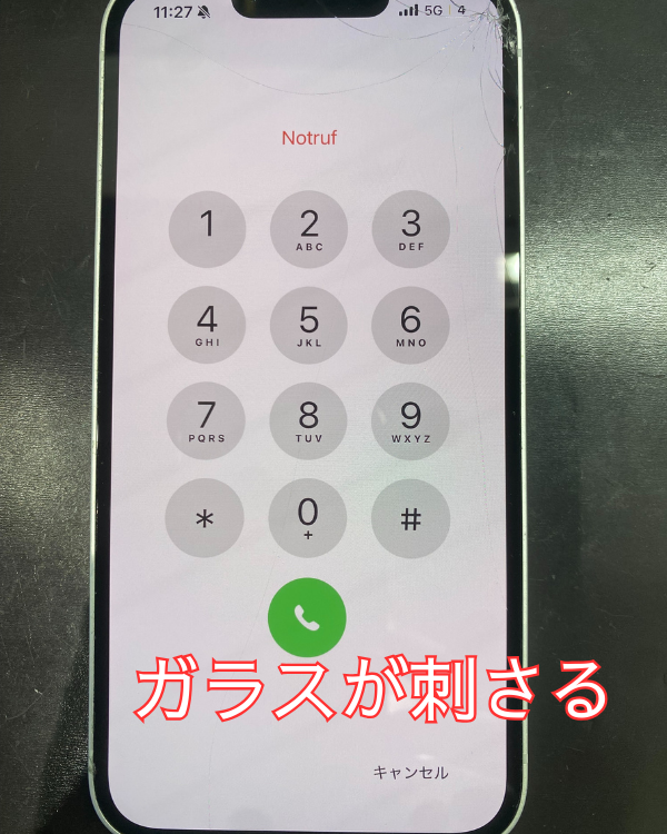 今回持ち込まれた端末はiPhone16eのガラスが割れている端末です。落としてガラスが割れてしまった、画面の修理とよく落とすからフィルムも買うので貼ってほしいとの事でご来店されました。ガラスが割れていただけで表示やタッチ操作に問題はありませんでしたが割れている部分をタッチすると少しガラスが指に付きケガをする恐れがありました。写真を見て分かるように落とし方にもよるのですがだいたい、角から落ちていくことが多いです。スマホを守るためにケースは角に厚みがあるものや頑丈そうなものを選ぶといいかと思います。フィルムも縁まであるタイプの方がオススメです!