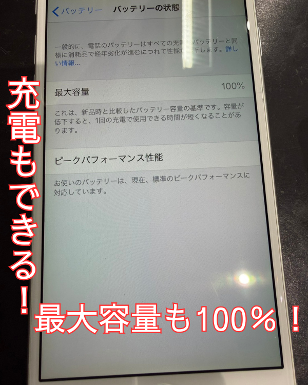 「充電できない=本体故障」と思われがちですが、今回のようにバッテリー交換のみで改善するケースは少なくありません。充電の減りが早い、充電しても増えないと感じた場合は早めのバッテリー交換がおすすめです。何かお困りの際はお気軽にお問い合わせください!