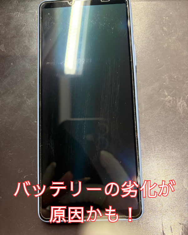 この場合バッテリーの劣化で電源が入らなくなってしまっています。Xperia10IIIは薄型・軽量が特徴の端末ですがその分バッテリーへの負荷が蓄積しやすく使用年数や充電回数によっては、前兆なく突然起動しなくなるケースも珍しくありません。