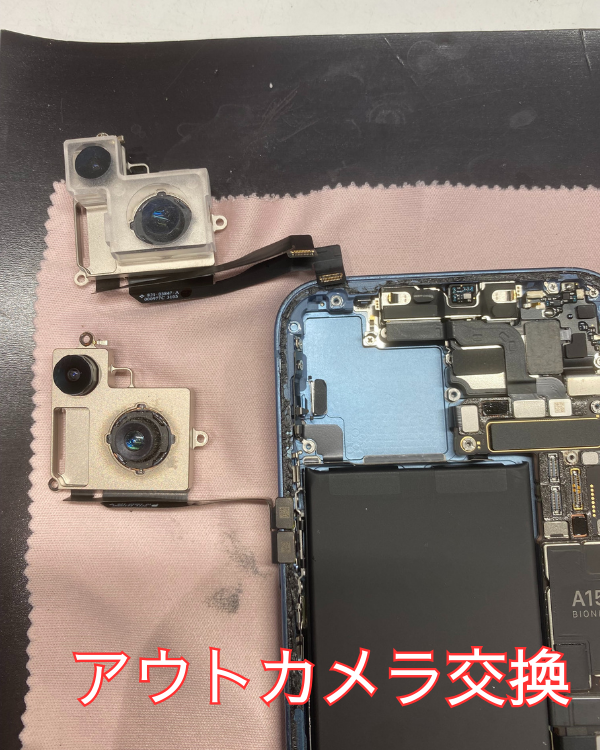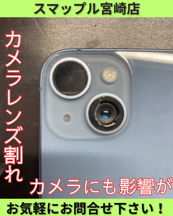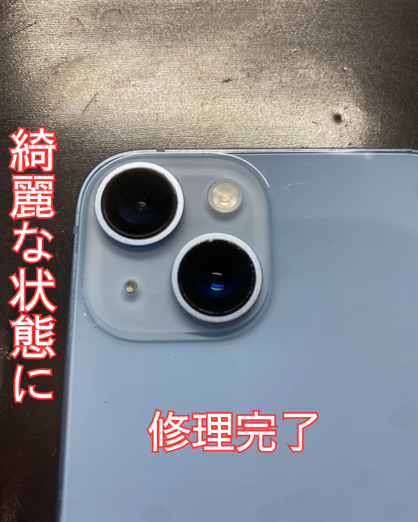 iPhone14カメラレンズ破損、アウトカメラにも傷・・・両方修理可能です!