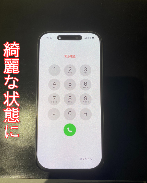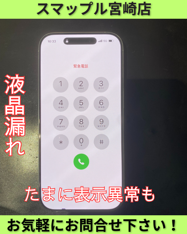 iPhone16Pro少しの液漏れとたまに表示異常。iPhone16シリーズも画面修理即日修理可能!