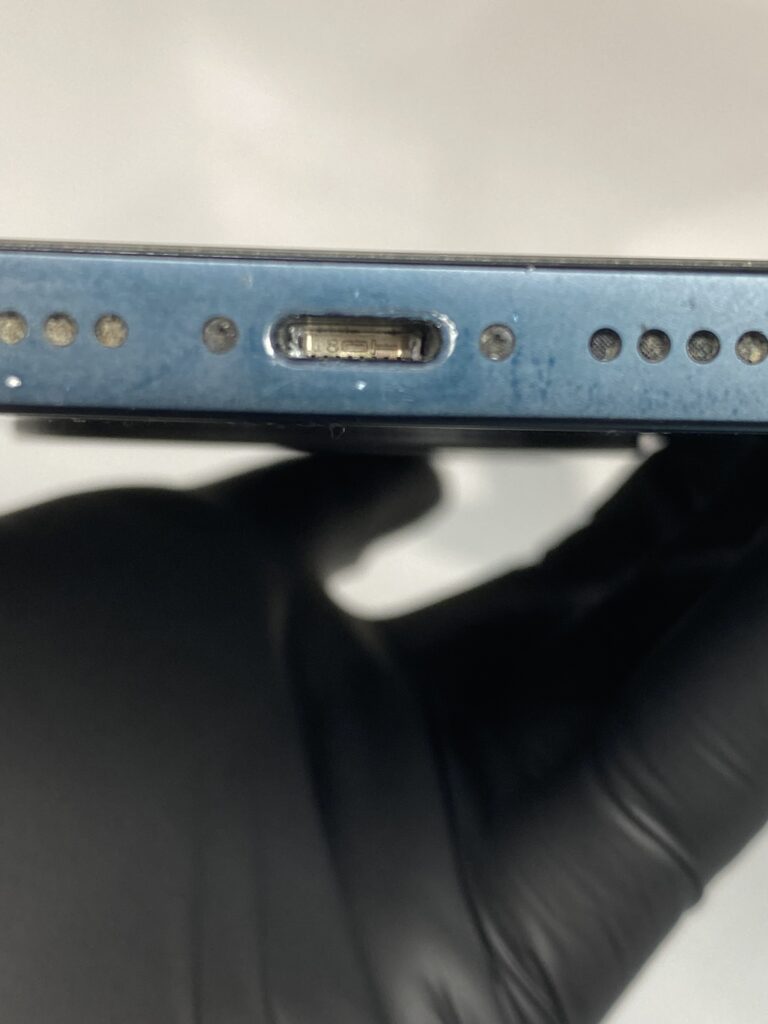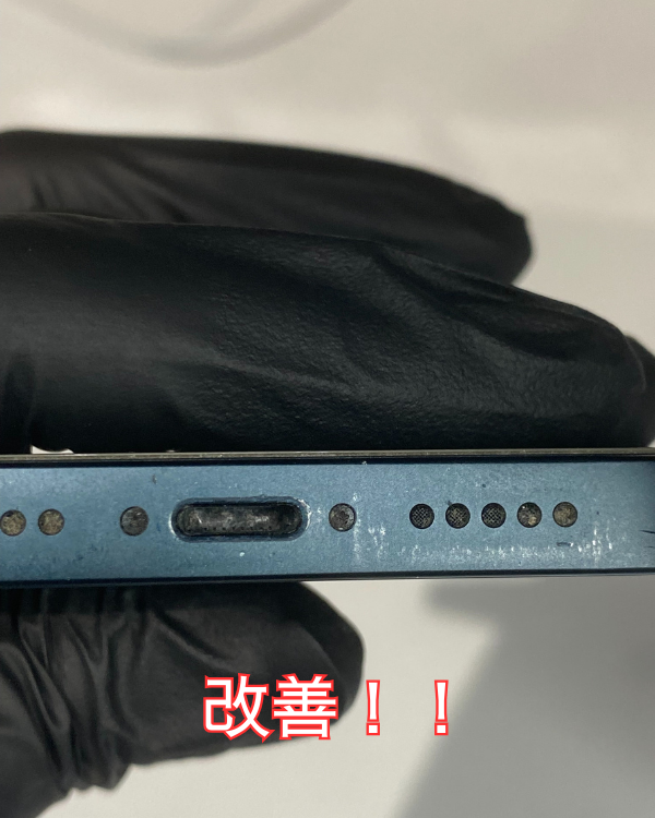 今回持ち込まれた端末はiPhone13。同じ充電器でしか充電出来なくなってしまったとのこと。お話を聞いてみるとモバイルバッテリーを使用中に落としてしまったそうです。充電口の中を覗いてみると充電器についている金具が折れて中に残ってしまっている状態でした。なので他の充電器は入る余地がなく充電出来ない状態でした。意外とこのケース多い気がします。スマホだけでなくiPadでもあります。充電口のパーツを交換するケースとメインテナンスで改善するパターンがありますが、今回はメインテナンスで改善できるのではないかと判断し、メインテナンスを行っていきました。