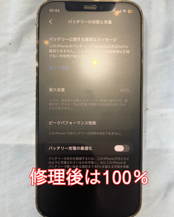 iPhone12Proバッテリー交換依頼。飛び込みでも即日対応可能です!