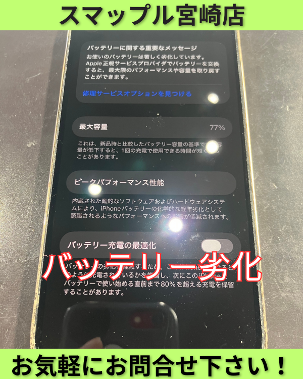 宮崎県宮崎市でスマートフォンの修理や買取、販売等を行っているスマップル宮崎店は、お客様に最大のご満足をしていただけるように、誠心誠意 ご対応させていただいております。民間の修理店だからこそできる柔軟な対応や、データを初期 …投稿日:2025-10-12
