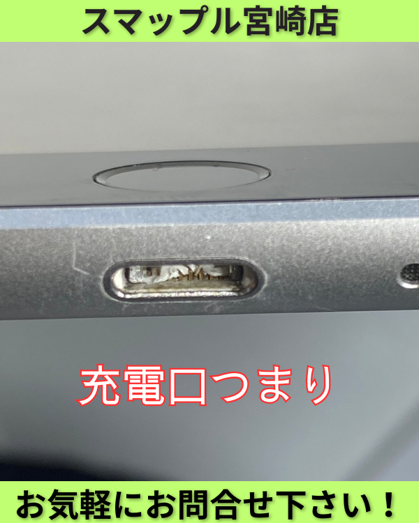 充電口になにか詰まってしまって取れない・・・充電器が刺さらないといった症状にも対応しています。ぜひスマップル宮崎店へご相談ください。