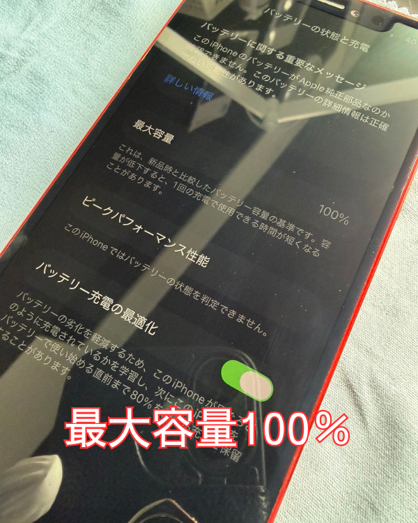 バッテリー交換後は最大容量100%