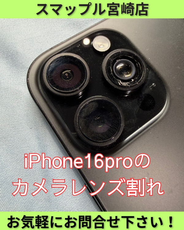 iPhone16Proカメラレンズ割れ。カメラが故障する前に修理を!!即日対応可能です。